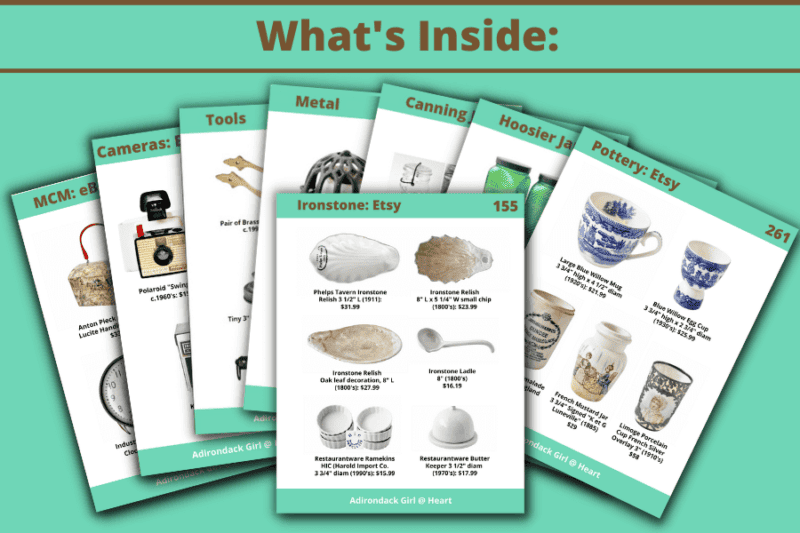 You can find me selling on all four of those platforms, publishing articles about antiques on my blog —adirondackgirlatheart.com–and sharing my latest vintage finds on YouTube.