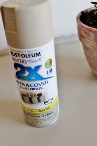 I went with Rust-Oleum’s 2X in Fossil, with a satin finish. It needed only one coat, followed by several spritzes to cover areas I hadn’t sprayed heavily enough the first time.