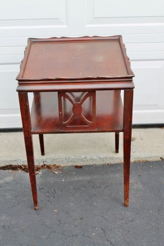 Hi everyone! I hope you all had a great week-end. I did some garage saling on Friday and laid pretty low on Saturday. Went out to dinner with friends to celebrate my sweet husband’s birthday. Then we enjoyed another birthday meal earlier today with the kids at Samurai, a Japanese hibachi place. Lucky guy. Tomorrow I’ll share Friday’s finds with you, but today I’ve got a simple furniture makeover for you.
