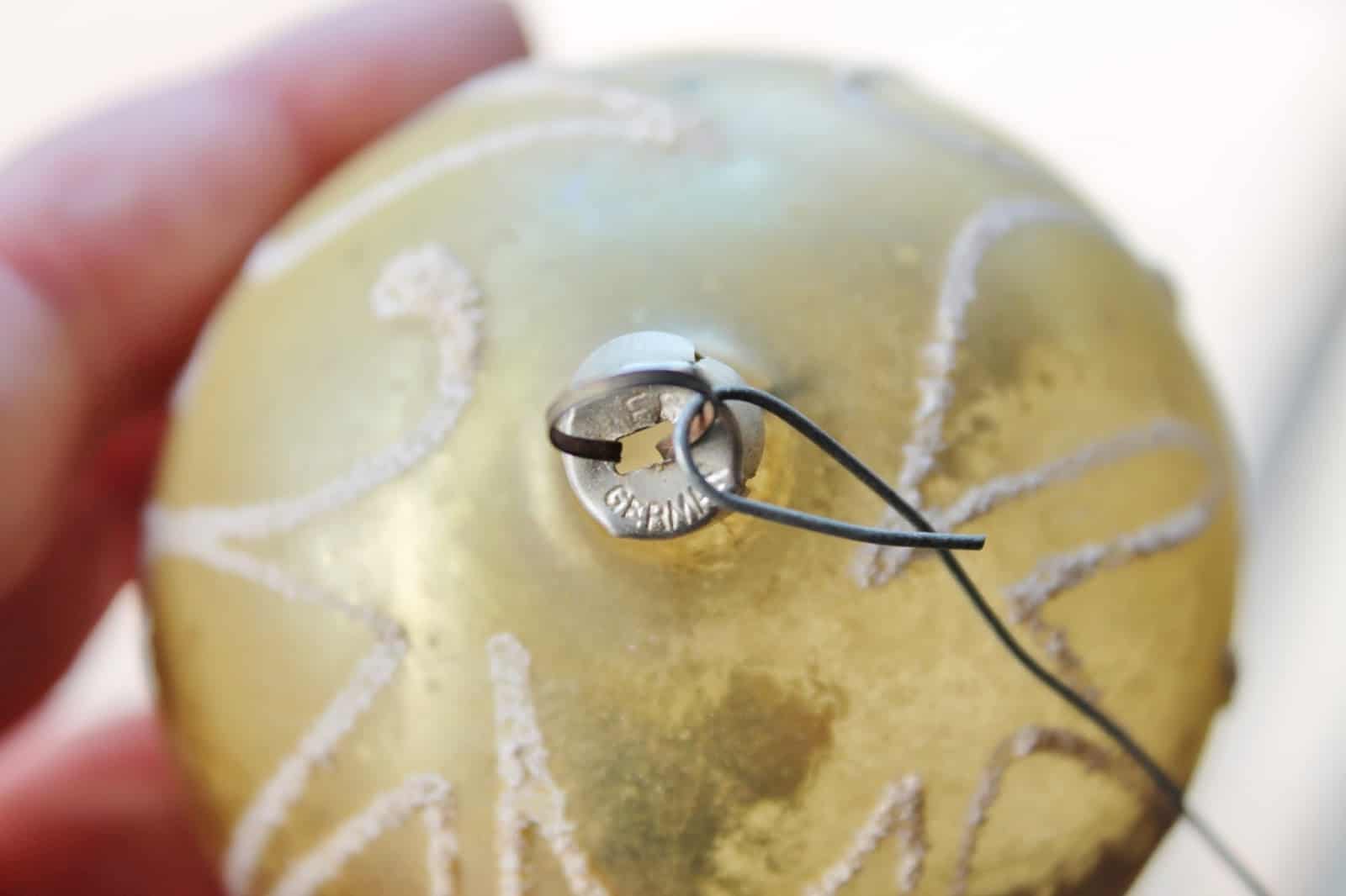I did a post this past summer about 1950s ornaments, but I never showed photos of the metal caps. I thought I’d do that today (and maybe update that post later). Here you see the cap marked “Shiny Bright, Made in USA.” In the late 1930s, Max Eckardt, an importer of German, hand-blown ornaments, recognized that supply would be interrupted if war broke out. Working with Corning Glass Company (NY), he developed glass ornaments that could then be hand-painted in his New Jersey factories.