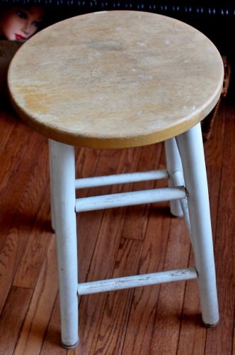 This stool turned out to be the only interesting find at an estate sale I drove too far out of the way for. Sigh. Due to the large amount of pencil markings on the top, I plan to stain or paint it, but I’ll leave the legs nice and chippy. I paid $4.00 and will price it at about $15-20.00.