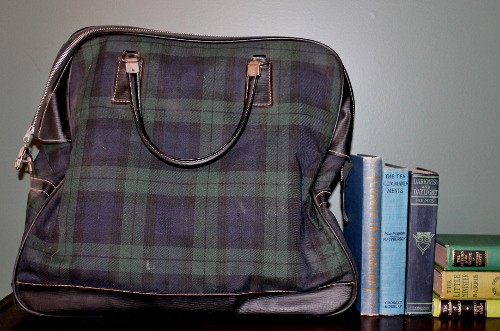 I love this travel bag because of its wonderful black watch plaid and because it’s so functional. At $2.99 it was a real bargain, though it has some staining on the bottom interior. I plan to add a new bottom made with some fresh, coordinating fabric. If I don’t keep it for myself, I will price it at about $30-35.00.