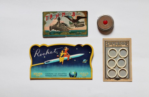 I’ve been helping a friend sort through her great-aunt’s belongings. As a thank-you, she has asked me to select a few things to take home with me. These sewing notions are among the things she “gifted” me. The item in the upper right corner is a cute tape measure. I will list these items for sale at about $10-12.00. Acme Notions is an online store selling everything sewing-related. It’s a good place to check out values on various items.